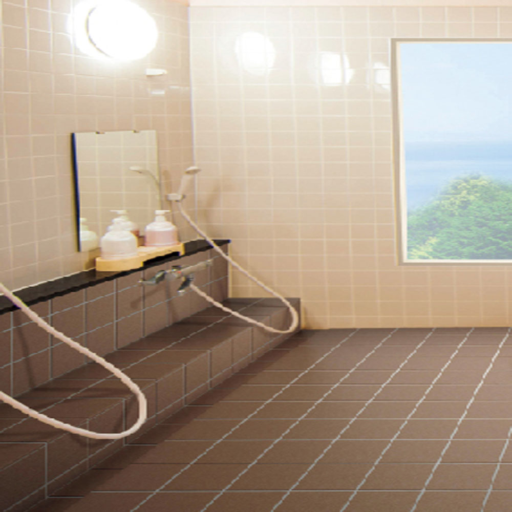浴室の床・壁に最適な150mm角の高機能タイルです。抗菌機能・抗ウィルス機能・抗アレルゲン機能 、<Nサーモ> の特徴素地内部に多数の気孔を持たせることにより、断熱性を向上させて肌ざわりも優しく、温暖感に優れたタイルです。素地に細かい石の粒を入れて滑り抵抗を上げていますので、高齢者やお子様にも安心してご使用いただけます。(グリーン購入法適合・防汚仕様・防滑性)