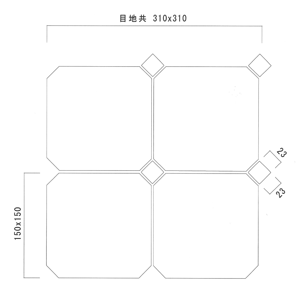 150mm角の四隅に23mm角タイルをドットとして用いるレトロモダンなタイル。