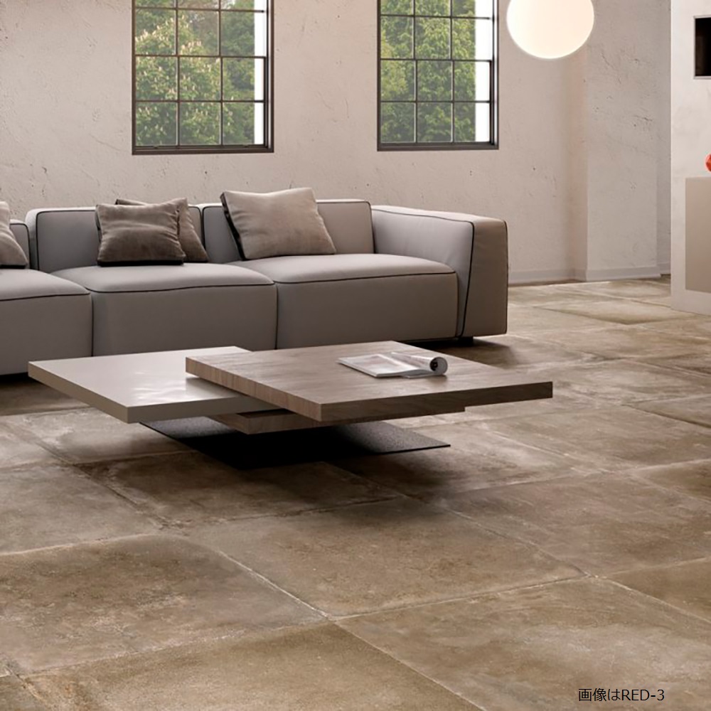 洗練された表情を持つコンクリート調の600mm角タイル、無機質になり過ぎず都会的でスタイリッシュな空間を演出します。(壁:接着剤張/金具工法推奨)
