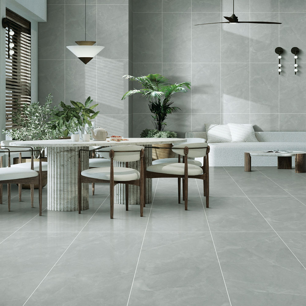1200x600x5.5mmサイズの柔らかい石目模様のタイル。通常タイルの約半分の厚さ、軽量で建物に負担を掛けず施工性に優れています。