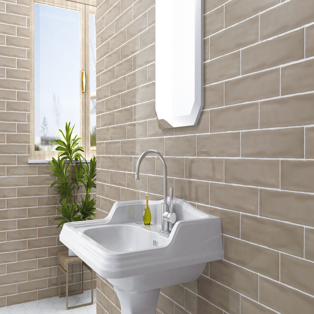 モダンな色合いの306x76mmサイズのタイル。揺らいだ面状が優しい空間をもたらします。