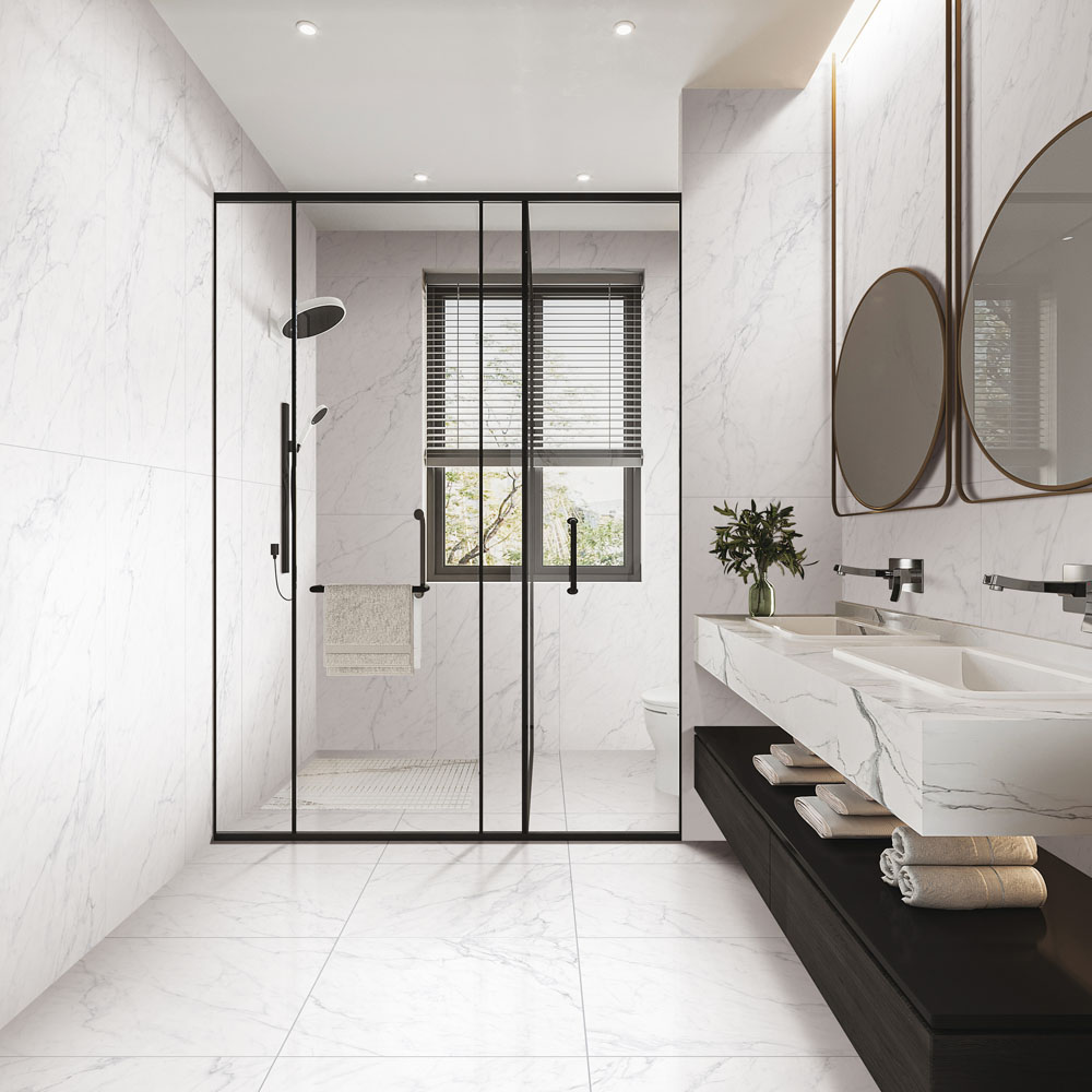 シックなモノトーンの屋内向き床壁用の600mm角タイル。(壁:接着剤張/金具工法推奨)
