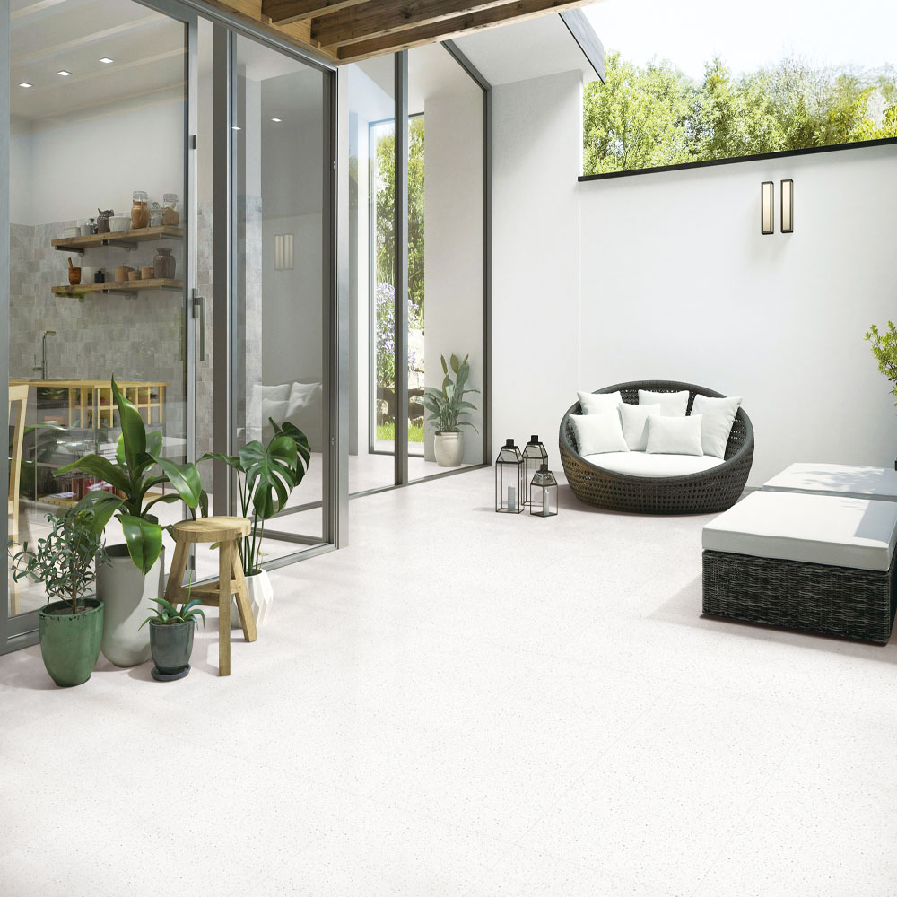 シックなモノトーンの屋内向き床壁用の600mm角タイル。(壁:接着剤張/金具工法推奨)