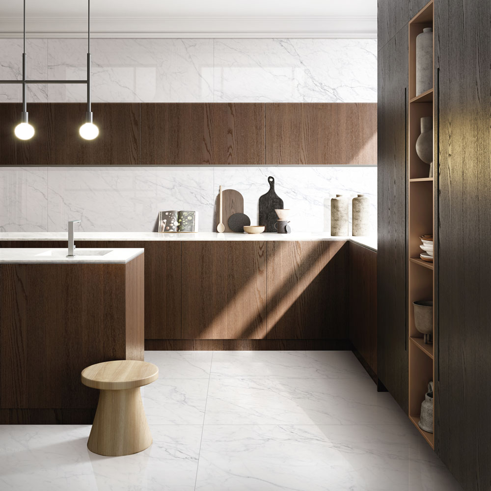 シックなモノトーンの屋内向き床壁用の600mm角タイル。(壁:接着剤張/金具工法推奨)