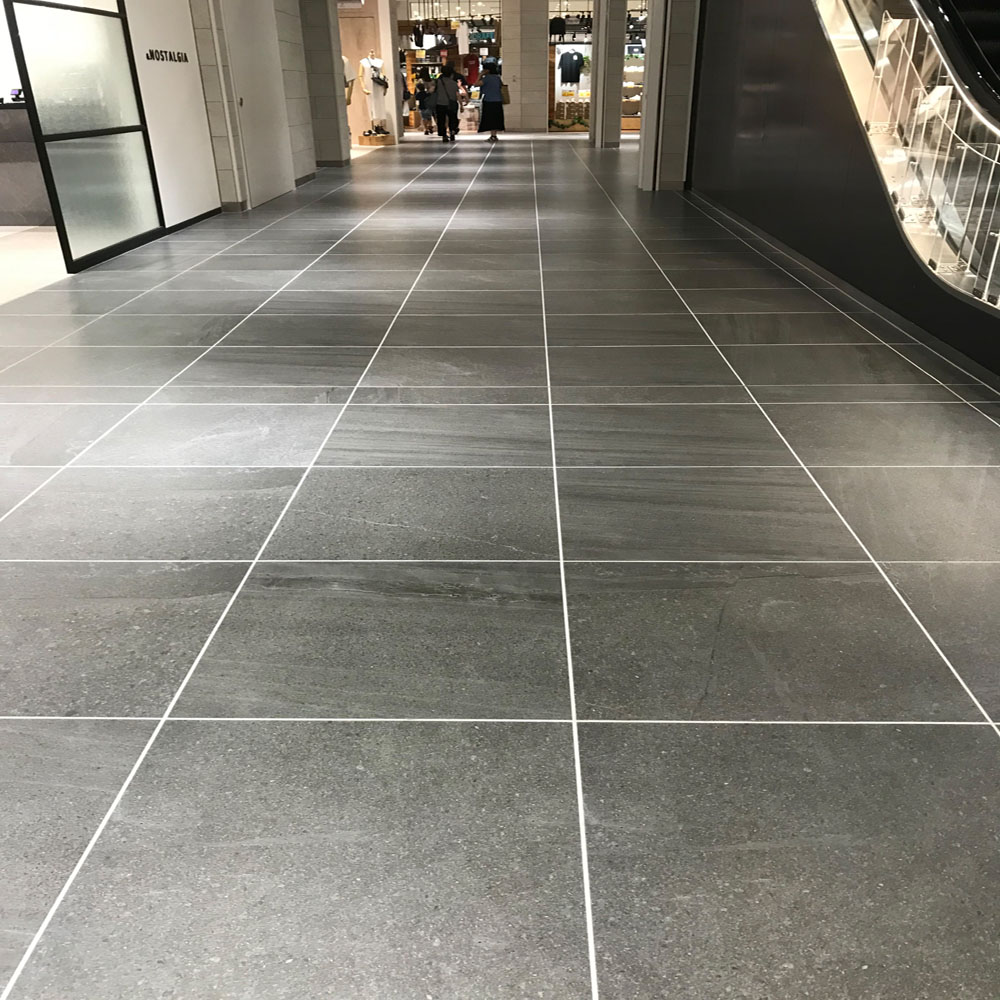 アルプスの麓から産出するライムストーンをモチーフに磁器質タイルとして再現しました。光沢の少ないマットタイプと防滑性の高いアンチスリップタイプがあります。600mm角・1200x600mm 。(壁:接着剤張/金具工法推奨・アンチスリップ仕様があります)