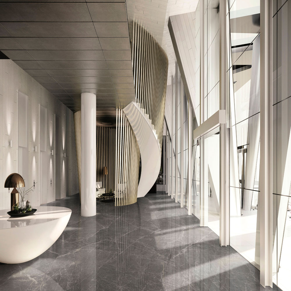 人造大理石の磨きタイル。600mm角・900mmx600mm・1200mmx600mmサイズがあります。光沢の少ないマットタイプがあります。(壁:接着剤張/金具工法推奨)