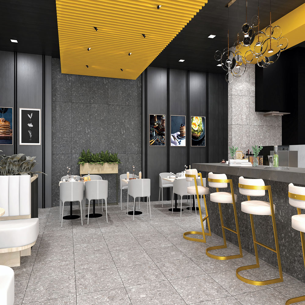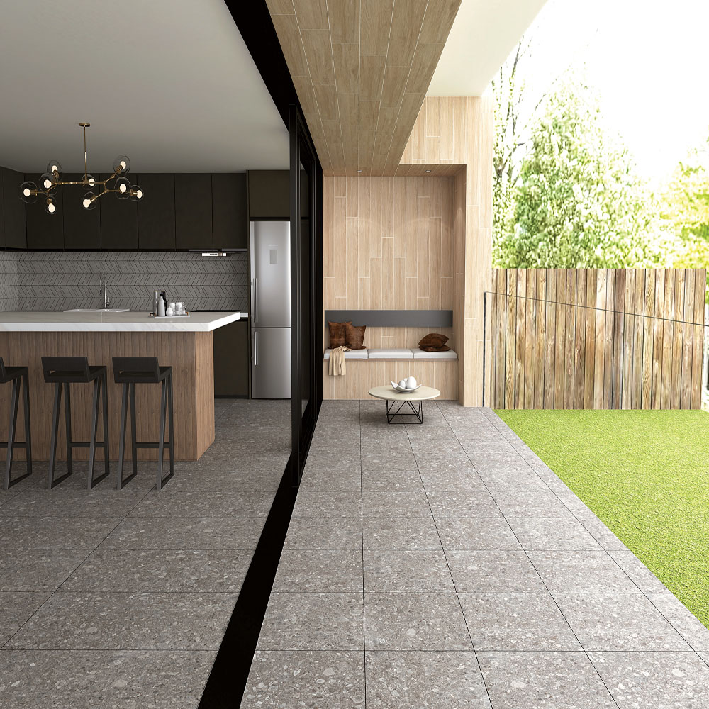 落ち着いた飽きのこない石材風 600mm角・1200x500mmサイズのタイル (壁:接着剤張/金具工法推奨)