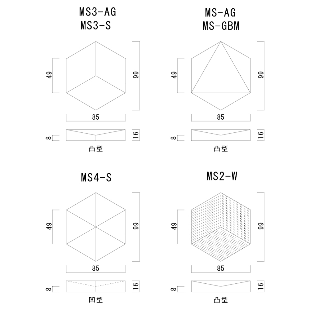 ■焼き物特有の色幅があります。■タイル寸法のばらつきを調整する程度の目地幅をお取り下さい。■白土は無釉の為、施工時の汚れ等にご注意ください。■酸洗いは避けてください■MS4Sは凸状の為中央に釉だまりの出ることがあります。■アンティークゴールドは釉薬の特徴から端部などが黒ずむことがあります。■銀黒メタリック、アンティークゴールドは表情の差、色幅を特徴とし、光の方向や当て方などによって黒の印象が異なります。