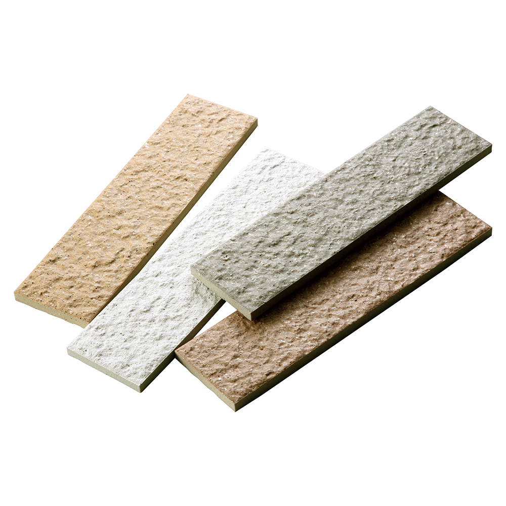 落ち着いた石面の二丁掛施釉タイル。耐候性に優れた施釉外装タイルが外構エクステリアをいつまでも清潔に保ちます。(グリーン購入法適合)