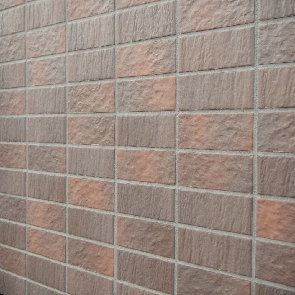 ふたつの面状の45二丁タイルをMIXして壁面の表情を豊かに遊び心のある雰囲気にします。(グリーン購入法適合)