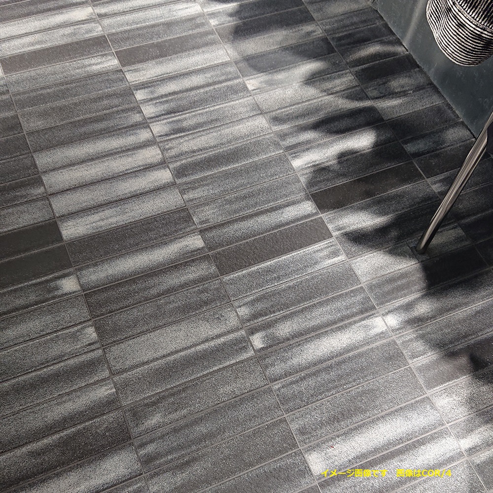 287x65mmサイズのタイル。十分に混ざり合っていない二種類の土の微妙な色合いが特徴です。防汚加工してあります。