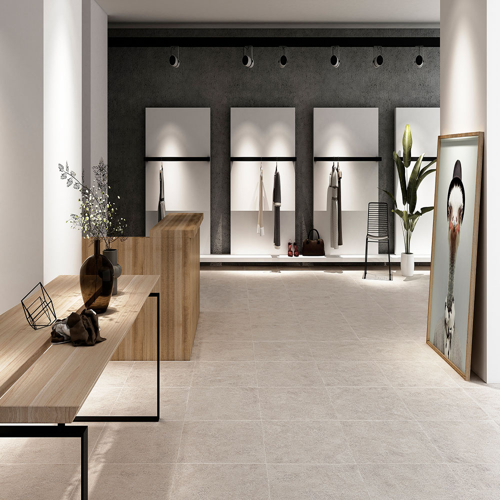 年月を経たコンクリートの風合いがあります。洗い出しにも似たアンティークな味わいが特徴です。光沢の少ないマットタイプと防滑性の高いアンチスリップタイプがあります。600mm角 (壁:接着剤張/金具工法推奨)