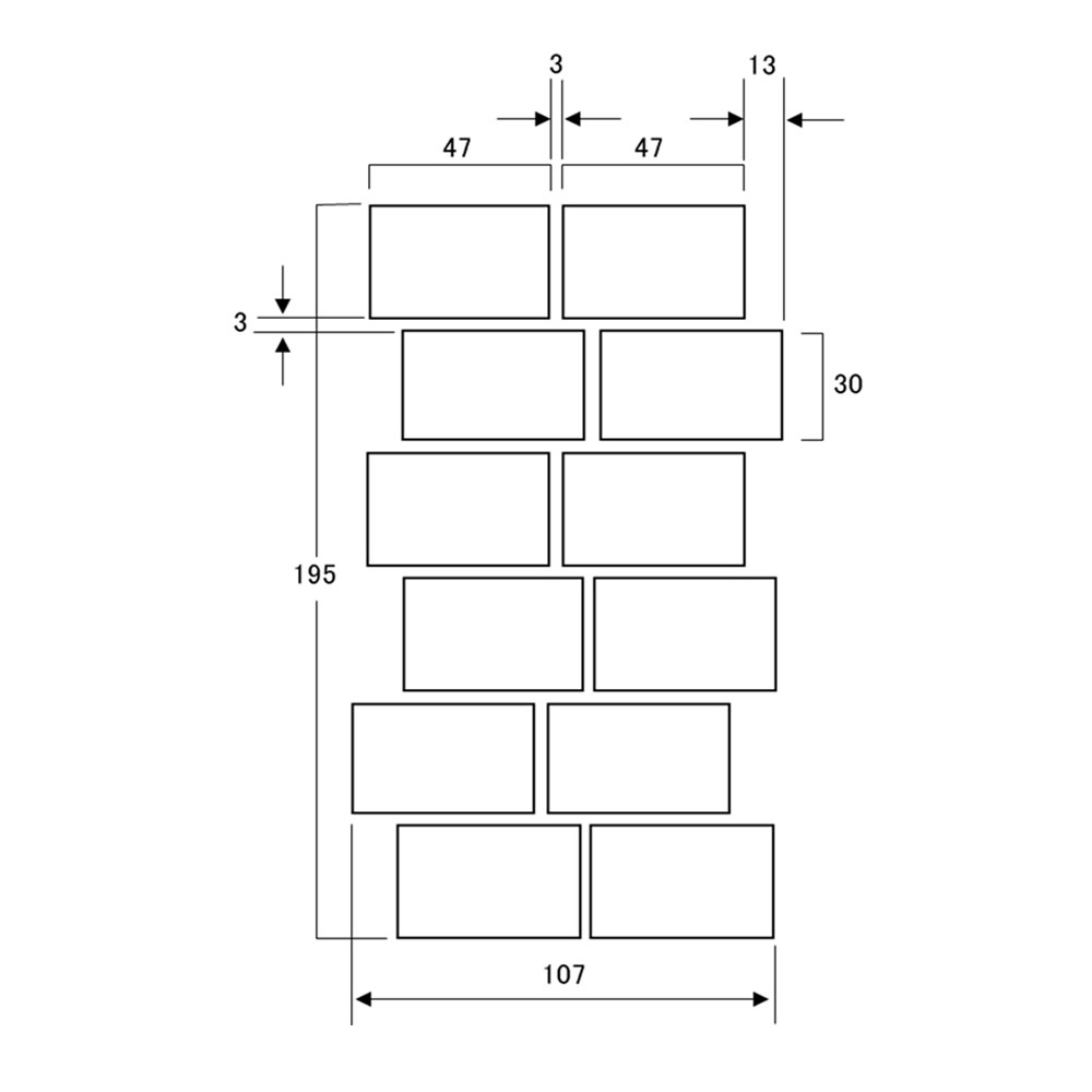 ●ご注文時は在庫・加工納期ををご確認ください。●色合い・寸法・割面状・凹凸感に大きな差の生じる場合があります。●カット面は白く見えるのでご注意ください。●接着剤張り専用タイルです。タイルの角は尖っているものもあり取り扱いにはご注意ください。●裏足は蟻足形状です。●連結ユニットは目地隙間に連結材(グレー)が見えます。ユニットは目地幅3mmで作成してあります。●ユニットは接着剤張り専用です。●4,3,4,5番色は濃淡二色の原料を使用しており、不均一な模様として表面に現れる場合があります。