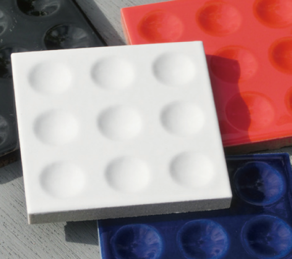 ディンプルが3X3個。ユニークな壁面を作り出す遊び心に満ちた形状の69mm角タイルです。