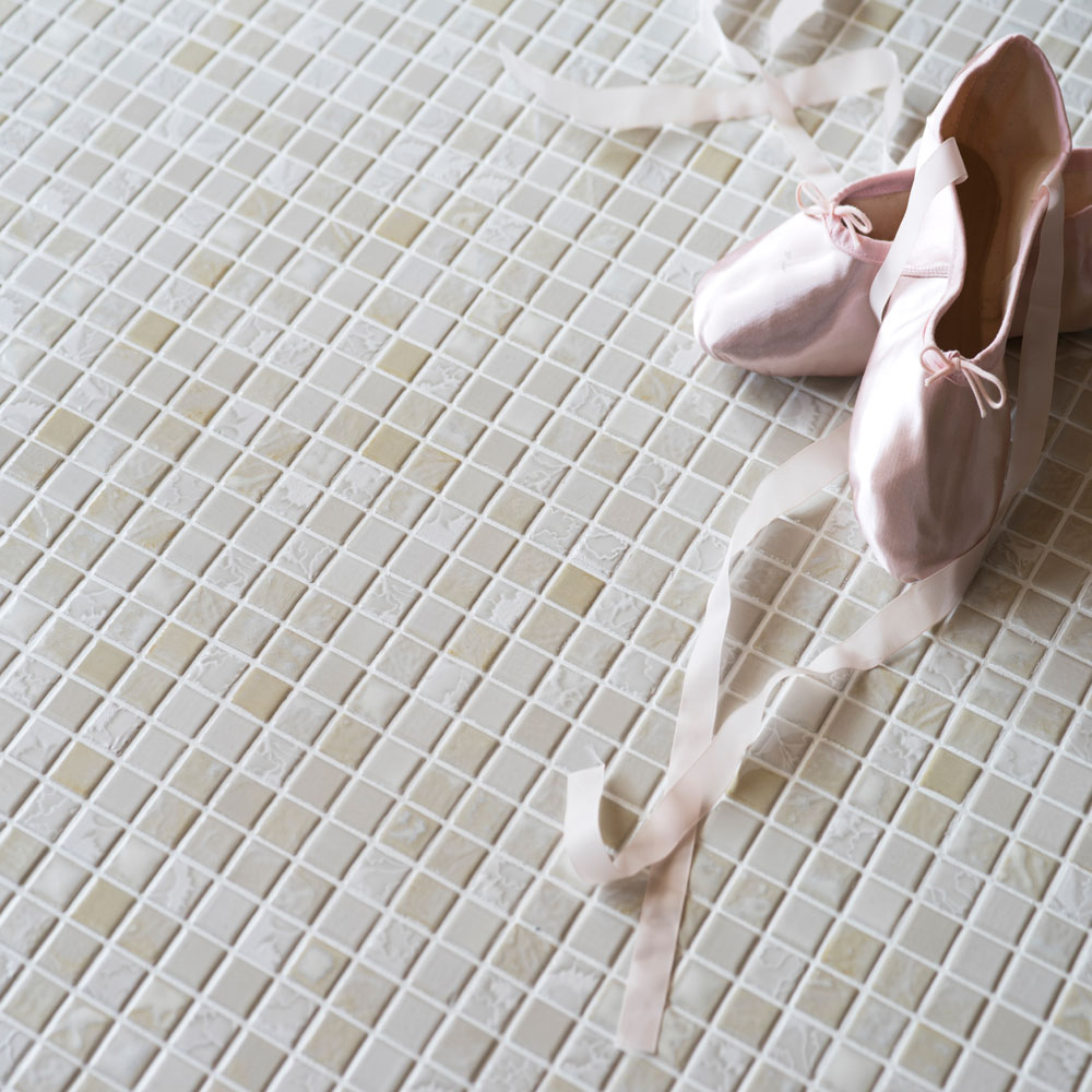 花の断片を散りばめた特殊柄の23mm角タイル。高貴な美しさを漂わせます。モチーフは美しい日本の女性を表す花。