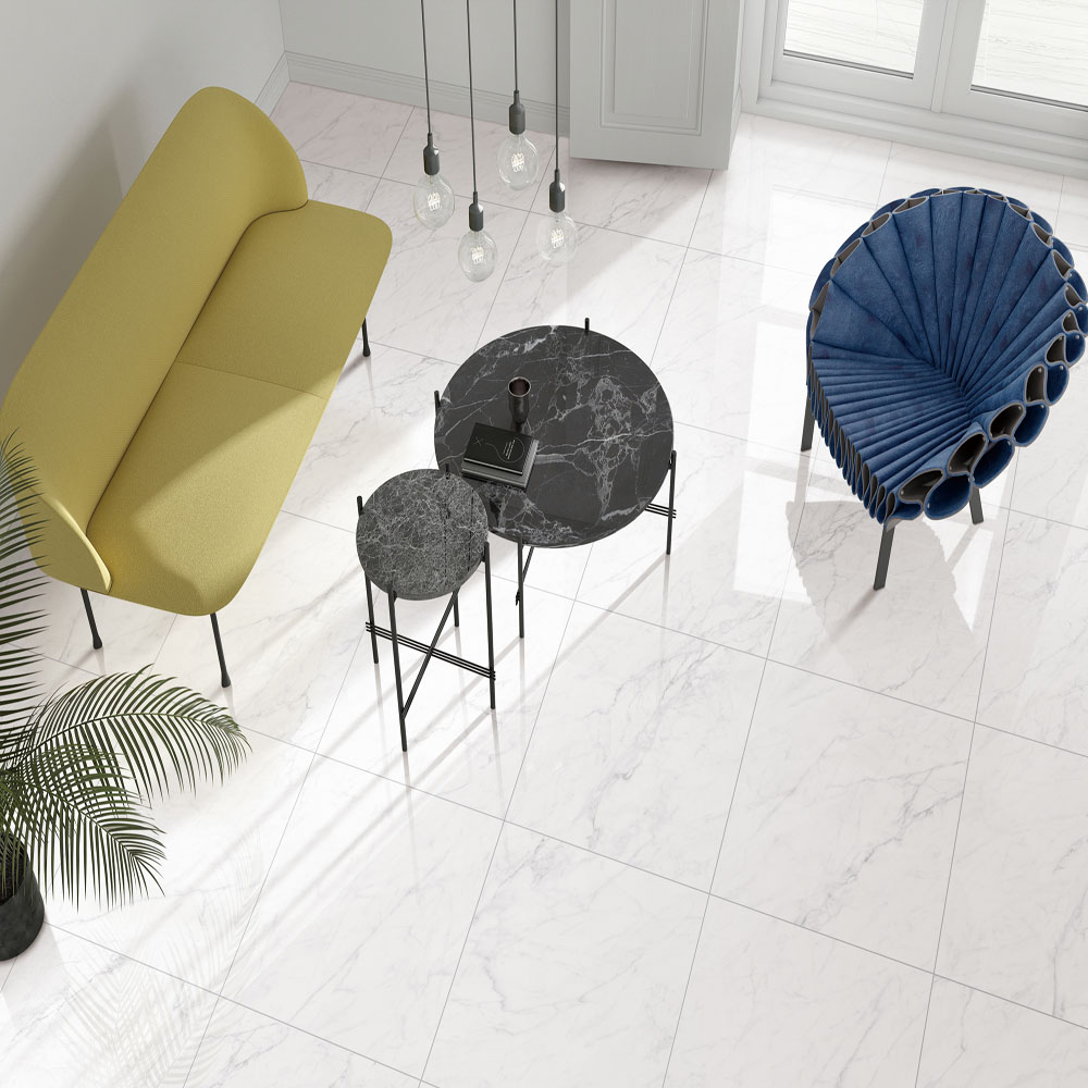 シックなモノトーンの屋内向き床壁用の600mm角タイル。(壁:接着剤張/金具工法推奨)