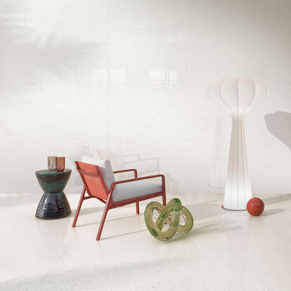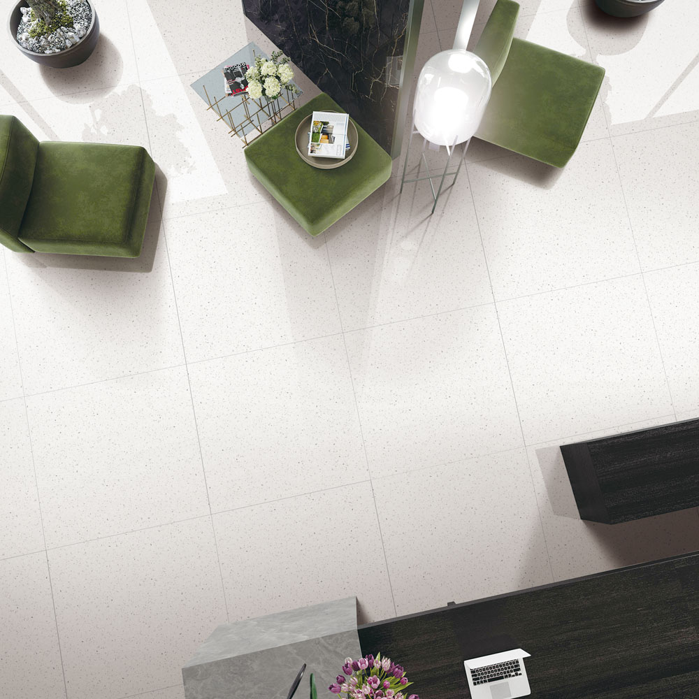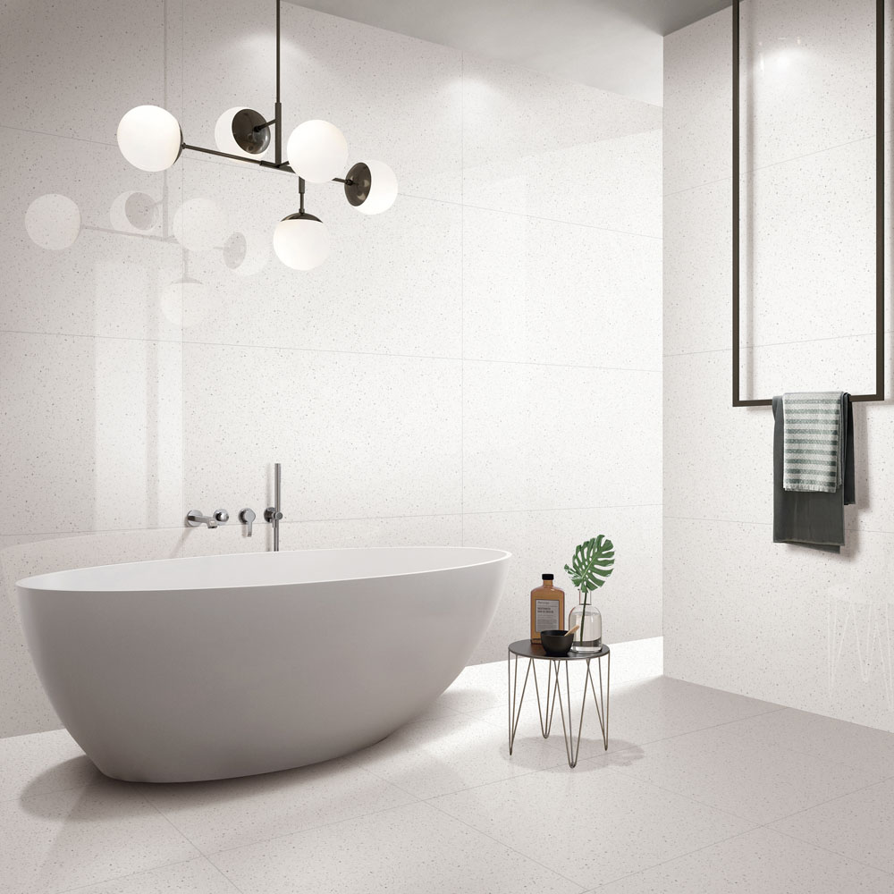 シックなモノトーンの屋内向き床壁用の600mm角タイル。(壁:接着剤張/金具工法推奨)