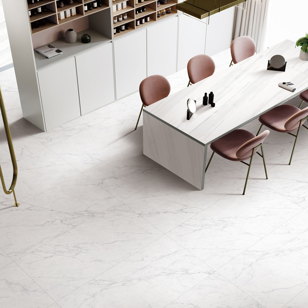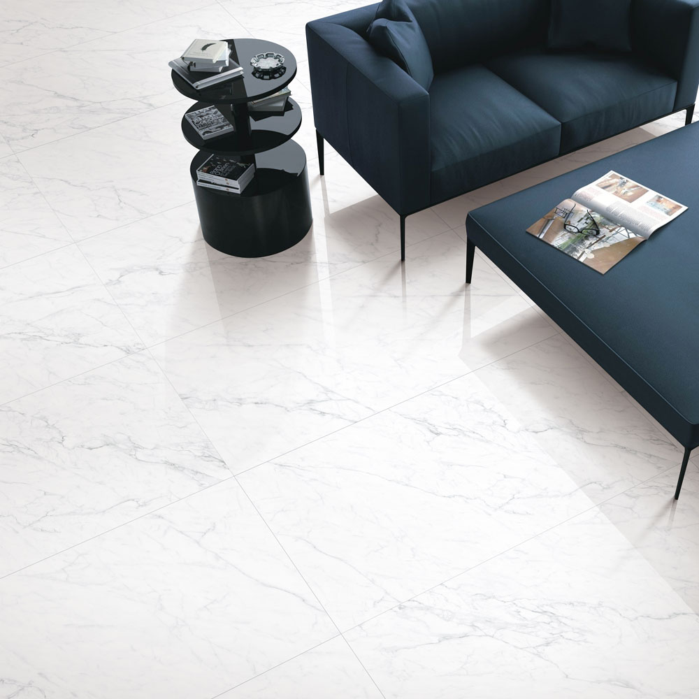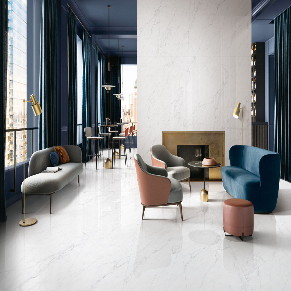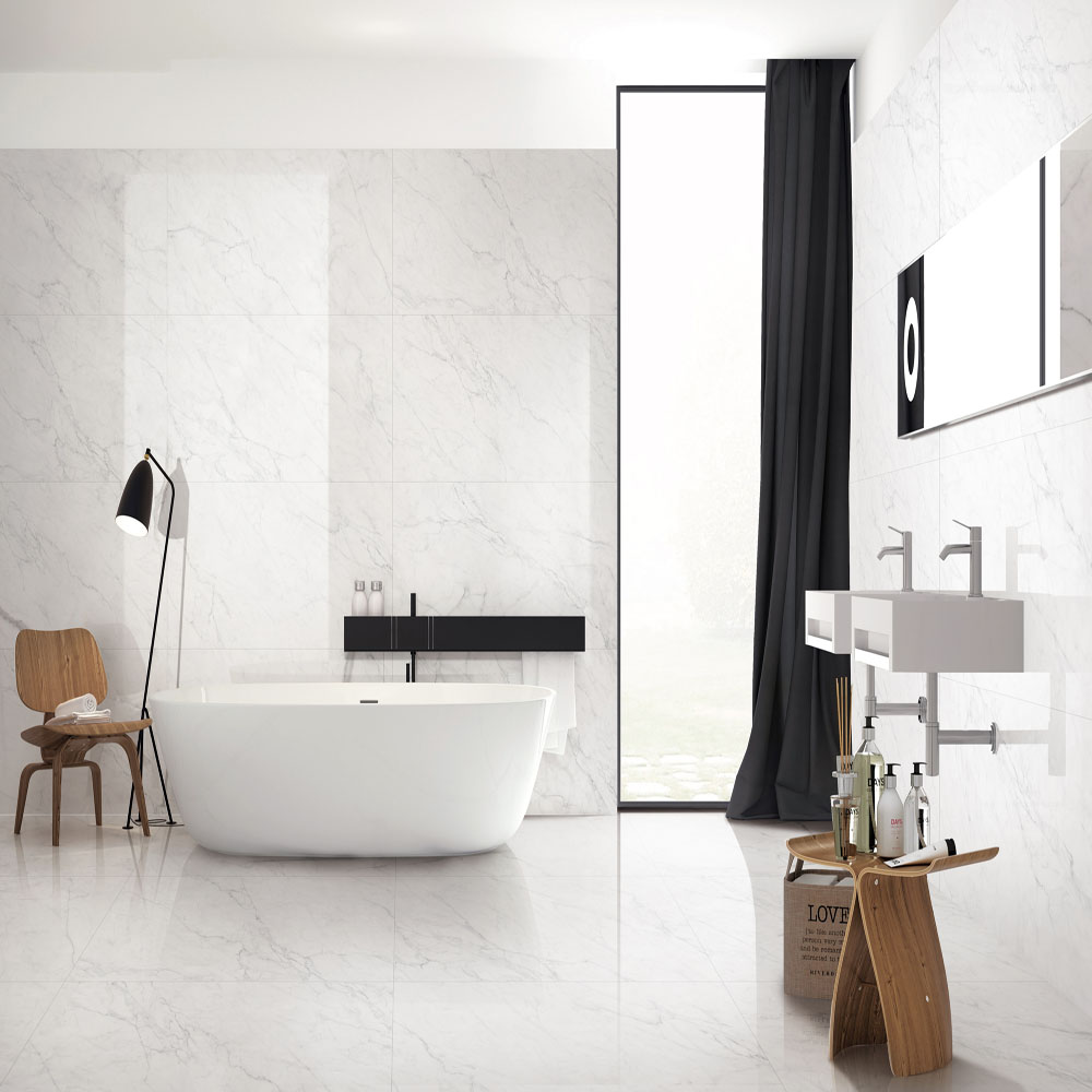 シックなモノトーンの屋内向き床壁用の600mm角タイル。(壁:接着剤張/金具工法推奨)