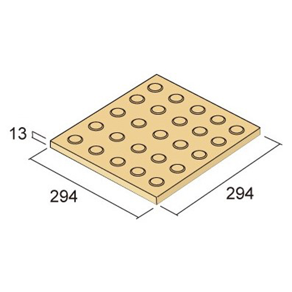 視覚障がい者誘導表示タイル。輝度比の高い鮮やかな黄色が高い評価を頂いています。9mmと13mmの二種類の厚さタイプがあります。(グリーン購入法適合・再生原料使用)