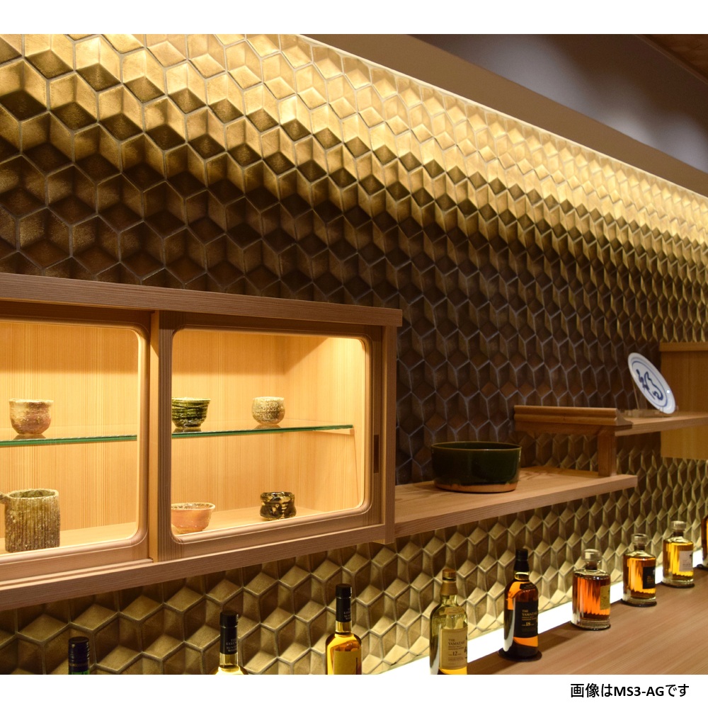■焼き物特有の色幅があります。■タイル寸法のばらつきを調整する程度の目地幅をお取り下さい。■白土は無釉の為、施工時の汚れ等にご注意ください。■酸洗いは避けてください■MS4Sは凸状の為中央に釉だまりの出ることがあります。■アンティークゴールドは釉薬の特徴から端部などが黒ずむことがあります。■銀黒メタリック、アンティークゴールドは表情の差、色幅を特徴とし、光の方向や当て方などによって黒の印象が異なります。