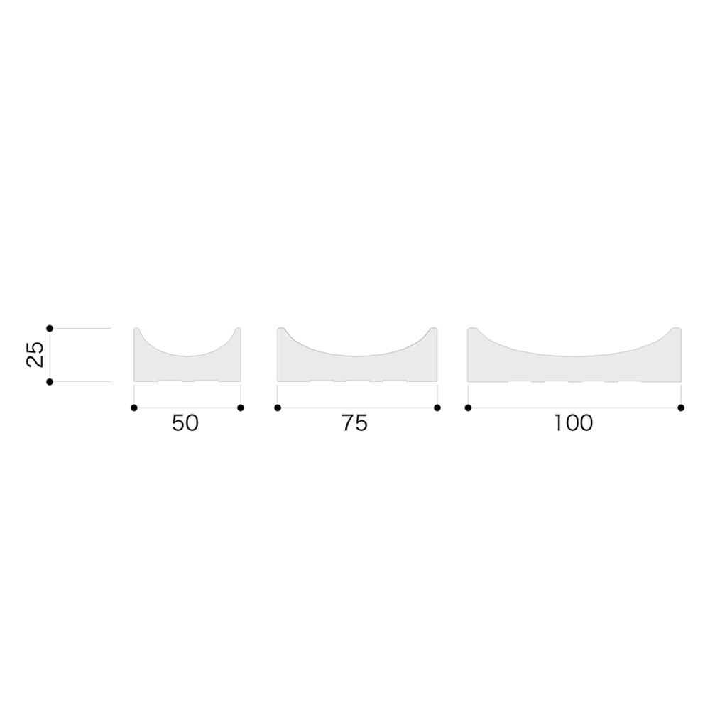 アールにくぼんだ少し長めのボーダータイル。光を取り込むシンプルな連続性が美しい。10mm程度の目地間隔がフォルムを際立たせる。