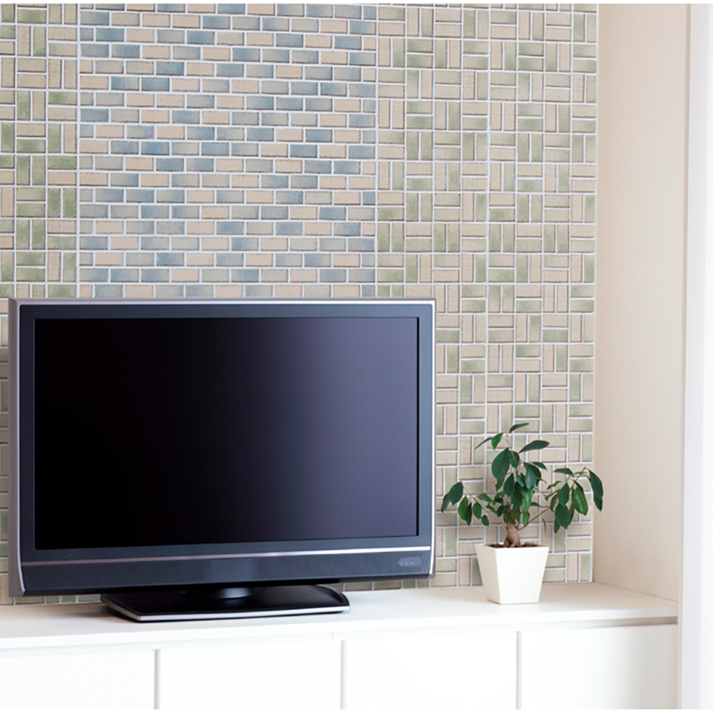 焼き物特有の色ムラで、爽やかな風合いの中にも深みを演出する25二丁タイル。リビング・ダイニングの背面など、アクセントとして活きる洗練されたタイルです